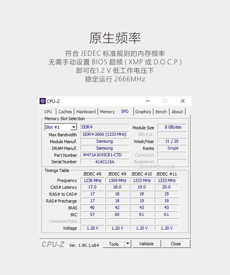 三星 SAMSUNG 笔记本内存 8G DDR4 2666频率 内存条